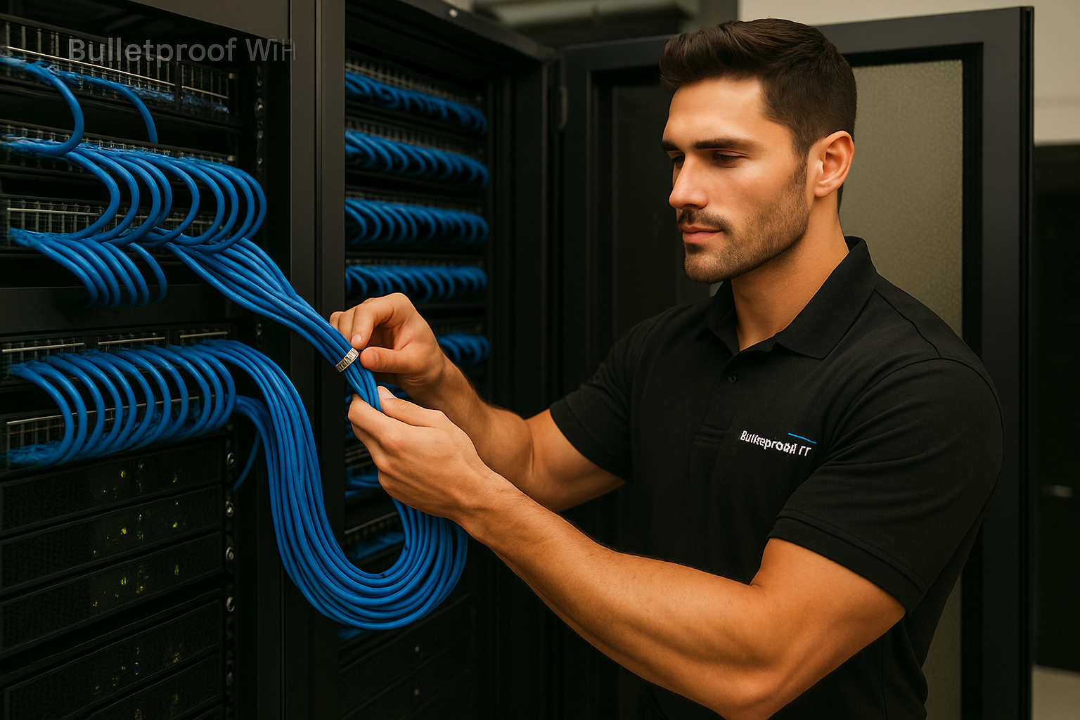 Bullet Proof WiFi designs and installs scalable, future-proof networks suitable for various environments, including home offices, multi-device households, small to mid-sized businesses, and commercial spaces. Their installations ensure reliable connectivity, supporting activities like remote work, video conferencing, and smart home operations.
